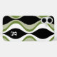 A mod patterned device case with a place for a simple monogram. The black and green design has a groovy organic wave pattern. A minimal look in black and white with a simple serif font for a monogram.