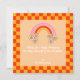 Retro groovy style colourful greeting card. Elegant retro font typography "Happy Thanksgiving", with a cute plaid pumpkin and red and orange chequered frame. The card includes a wonderful greeting message at the back which can be personalised.