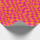 Get your groove on with this funky, psychedelic wrapping paper! The design features a classic checkerboard pattern that has been warped and distorted into a liquid, wavy optical illusion. Rendered in a bold, high-contrast color palette of bright hot pink (fuchsia) and tangerine orange, this design screams energy.