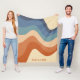 Get cosy with a warm throw in a colourful retro groovy pattern of wavy bands of muted colours. The colours include a mix of warm and cool colours - shades of blue, terra cotta and beige blend beautifully to compliment many decor styles. A fun text template with "Cosy is a Vibe" text can be personalised with any text you desire or ordered as written.
