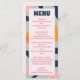 1970s vintage retro groovy personalised wedding menu card in groovy bold typography and pastel colours including; pink, blue and orange. This menu card is easily editable. If you need help with the customisation of this product or you need more matching products for this collection kindly message me via Zazzle.