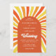 Retro groovy waves orange yellow sun wedding invitation