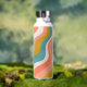 Retro groovy 70s wavy pattern personalised name water bottle.