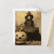 Retro Halloween creepy girl with black cat Postcard