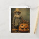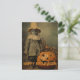 Retro Halloween creepy kids with carved pumpkins Postcard