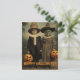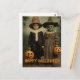 Retro Halloween creepy kids with carved pumpkins Postcard