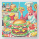Retro Hamburger Comic Illustration Stone Coaster