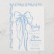 Retro Hand Drawn Dusty Blue Bow Boy Baby Shower Invitation