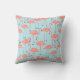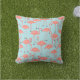 Retro Hand-Drawn Flamingo | Tropical Pattern Blue Cushion