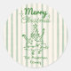Retro Hand Drawn Green Funny Christmas Tree Classic Round Sticker