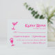 A unique and elegant calligraphy colourful retro wedding rsvp card. As you see it has a vintage modern white grey background with vivid pink hand written script and hand drawn painted champagne and martini glasses. You can edit easily it by clicking on the personalise button.