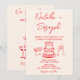 Retro Hand Drawn Red Cake Quirky Unique Wedding Invitation