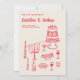 Retro Hand Drawn Red Quirky Cake Modern Wedding Invitation