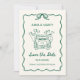 Whether your wedding will be intimate or large, formal or laid-back, this card is perfect for announcing your special day in a way that feels true to you. Combining the vintage charm of hand-drawn artwork with a trendy green colour and whimsical elements, this Save the Date is a fresh take on wedding stationery that’s sure to impress.