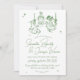 Retro Hand Drawn Scribble Green & White Wedding Invitation