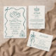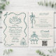 Whimsical hand-drawn retro-style wedding design in dark teal with champagne tower paired with hand-lettered and vintage serif fonts.