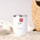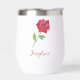 This romantic red rose personalised wine tumbler features my original mid-century-inspired collage art, crafted with paper and scissors for a bold, timeless look. The vibrant vintage-inspired floral design, paired with a customisable name in stylish retro script typography, adds a personal touch that’s perfect for any celebration.