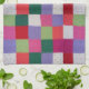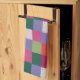 retro hand knitted colourful patchwork squares tea towel