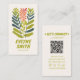 Retro Handwritten Drawn Green Funky Floral QR Cod Business Card