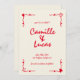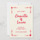 The handwritten design adds a personal touch to the invitation, evoking a sense of warmth and authenticity. The vibrant red colour palette infuses the design with energy and vitality, while whimsical details lend a touch of nostalgia and whimsy.