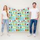 This Retro Harlequin Pattern Fleece Blanket is mid century modern style at its finest. The vintage inspired design features an aqua background with rows of triangular shapes forming a harlequin pattern. The two-toned diamond shapes are yellow, white, red, orange, black, green, and white with black accents. But wait, there’s more! There are also orange ovals, green ovals with black starbursts, and outlines of black diamonds. Time marches on, but you’ll feel like you’ve found a kitschy blast from the past with this colourful geometric treasure.
