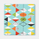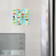 This Retro Harlequin Pattern Magnet is mid century modern style at its finest. The vintage inspired design features an aqua background with rows of triangular shapes forming a harlequin pattern. The two-toned diamond shapes are yellow, white, red, orange, black, green, and white with black accents. But wait, there’s more! There are also orange ovals, green ovals with black starbursts, and outlines of black diamonds. Time marches on, but you’ll feel like you’ve found a kitschy blast from the past with this colourful geometric treasure.
