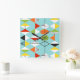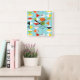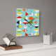 This Retro Harlequin Pattern Square Clock is mid century modern style at its finest. The vintage inspired design features an aqua background with rows of triangular shapes forming a harlequin pattern. The two-toned diamond shapes are yellow, white, red, orange, black, green, and white with black accents. But wait, there’s more! There are also orange ovals, green ovals with black starbursts, and outlines of black diamonds. Time marches on, but you’ll feel like you’ve found a kitschy blast from the past with this colourful geometric treasure.