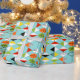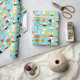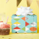 This Retro Harlequin Pattern Wrapping Paper is mid century modern style at its finest. The vintage inspired design features an aqua background with rows of triangular shapes forming a harlequin pattern. The two-toned diamond shapes are yellow, white, red, orange, black, green, and white with black accents. But wait, there’s more! There are also orange ovals, green ovals with black starbursts, and outlines of black diamonds. Time marches on, but you’ll feel like you’ve found a kitschy blast from the past with this colourful geometric treasure.