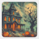 Retro Haunted House with Jack-o'-lantern Spooky Square Sticker