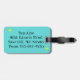 Mele Kalikimaka! This customisable Retro Hawaiian Christmas Luggage Tag features a minimalist cartoon drawing of an attractive couple taking the holiday trip of a lifetime! The mid century modern scene is set in a tropical airport. Mr. and Mrs. Tourist are posing in front of the floor to ceiling glass walls. After all, they want to document every moment of their vacation to paradise. Mr. Tourist is dressed in a black suit, light blue shirt, red tie, and black fedora. He is holding an orange suitcase. His arm is around his beautiful bride. She is wearing a hot pink dress. A bright blue handbag is slung over one arm. A Santa hat is gracing her blonde head. It wouldn't do to travel by air and not look your best! Both of them are wearing colourful flower leis around their necks. Beside them, we see a stunning, golden skinned hula girl with flowing black hair. Miss Hula is wearing a traditional grass skirt. Her hula top has a festive twist, however. Her bikini top is red with white trim. Eat your heart our, Mrs. Claus! Instead of a flower, she is wearing a sprig of holly in her hair. On one arm, she has an extra Hawaiian lei ready to offer the next person to step off the plane. Ah, can't you smell the orchids now? On the opposite side of the couple, there is a Christmas tree that has been given an island makeover. The happy cedar is decked out with pastel seashells and starfish. On the opposite side of the glass, we can see the luxury, jumbo jetliner that brought the couple to their vacation destination. On the tarmac, 1960's style flight attendant is making her way to the building. She is wearing a form fitting, blue uniform and a blue pillbox hat. Yowza! That gorgeous blonde can offer me coffee, tea, or milk anytime! The sky a shade of aqua that makes you want to reach for the suntan oil! We can see the green silhouettes of palm trees and the dark blue silhouette of a plane flying among the fluffy, light blue clouds. Oh, I hope those poor suckers on that plane aren't on their way back to the daily grind! Aloha! The opposite side of the tag features an aqua background and plenty of room for personalising with your contact information.