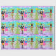 Mele Kalikimaka! This Retro Hawaiian Christmas Wrapping Paper features a repeating minimalist cartoon drawing of an attractive couple taking the holiday trip of a lifetime! The mid century modern scene is set in a tropical airport. Mr. and Mrs. Tourist are posing in front of the floor to ceiling glass walls. After all, they want to document every moment of their vacation to paradise. Mr. Tourist is dressed in a black suit, light blue shirt, red tie, and black fedora. He is holding an orange suitcase. His arm is around his beautiful bride. She is wearing a hot pink dress. A bright blue handbag is slung over one arm. A Santa hat is gracing her blonde head. It wouldn't do to travel by air and not look your best! Both of them are wearing colourful flower leis around their necks. Beside them, we see a stunning, golden skinned hula girl with flowing black hair. Miss Hula is wearing a traditional grass skirt. Her hula top has a festive twist, however. Her bikini top is red with white trim. Eat your heart our, Mrs. Claus! Instead of a flower, she is wearing a sprig of holly in her hair. On one arm, she has an extra Hawaiian lei ready to offer the next person to step off the plane. Ah, can't you smell the orchids now? On the opposite side of the couple, there is a Christmas tree that has been given an island makeover. The happy cedar is decked out with pastel seashells and starfish. On the opposite side of the glass, we can see the luxury, jumbo jetliner that brought the couple to their vacation destination. On the tarmac, 1960's style flight attendant is making her way to the building. She is wearing a form fitting, blue uniform and a blue pillbox hat. Yowza! That gorgeous blonde can offer me coffee, tea, or milk anytime! The sky a shade of aqua that makes you want to reach for the suntan oil! We can see the green silhouettes of palm trees and the dark blue silhouette of a plane flying among the fluffy, light blue clouds. Oh, I hope those poor suckers on that plane aren't on their way back to the daily grind! Aloha!