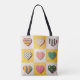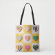 CARRY RETRO JOY EVERYWHERE! This heavy-duty tote bag features a bold grid of patterned retro hearts—polka dots, stripes, and stars—in an electric colour palette that screams vintage fun.