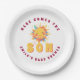 Retro Here Comes The Son Boy Baby Shower Paper Plate