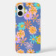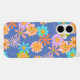 Retro Hippie Flower Pattern in Blue Case-Mate iPhone Case