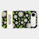 This iphone 17 air phone case is so cute and girly! It's hippie 70s daisy floral pattern with multi-sized white and yellow daisies on a black background and your name in a fun trendy font will go with everything! It will look fabulous on your phone!