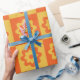 Retro Hippie Flowers on Chequerboard Yellow Orange Wrapping Paper