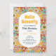 Retro Hippie Groovy Flower Hello Seventy Birthday Invitation