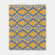Psychedelic blanket with weird eye pattern indigo blue and honeycomb yellow colours. This fun eclectic quirky pattern resembles retro modern mid-century style due to its geometric shapes.