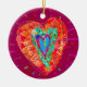Retro Hippie Pink Turquoise Heart Name Year Ceramic Ornament