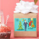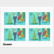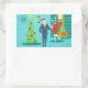 These Retro Holiday Cartoon Couple Stickers will put you in the holiday spirit. The design features a turquoise background with teal bricks and an olive green, cone fireplace. There is a teal, starburst wall clock and a two-tier pendant lamp in shades of yellow, blue and black. A green Christmas tree is adorned with a yellow star and teal ornaments. Front and centre, there is a distinguished, martini-swilling businessman in a blue suit and orange tie. To his side, his blonde bombshell of a trophy wife is wearing a red wiggle dress and a Santa hat while holding a tray of martinis. Fa-la-la-di-da!