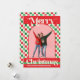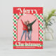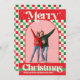 A retro red, pink, green and cream grid patterns this merry and bright holiday greeting card. Featuring a cheery red lined arch photo frame and space for your special holiday message.