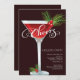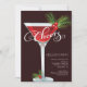 Fun CHEERS! Retro Holiday Cocktail Party Invitation featuring a red martini glass with a red & white stripe candy cane stirrer and a holly leaf with berries on the stem.