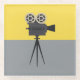 A little bit of old Hollywood comes to life in a new way with this retro Hollywood tripod style reel movie camera on a modern yellow and grey colorblock background