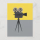 A little bit of old Hollywood comes to life in a new way with this retro Hollywood tripod style movie making camera on a modern yellow and grey colorblock background