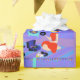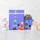 This Retro Home for the Holidays Wrapping Paper looks like a scene out of a 1960's television Christmas special. The minimalist design features an attractive cartoon couple in the living room of a mid century modern house. The room prominently features a purple and blue stone wall and a matching purple and blue striped rug. Against the wall, there is a turquoise cone shaped fireplace with a roaring fire. Two, red and white Christmas stockings have been hung by the mod chimney with care. Strands of colourful Christmas lights are strung across the top of the wall. In the corner, the suave man of the house is lounging in a red egg chair. He is wearing a blue suit with a red tie. There is a sprig of holly pinned to his lapel. In one hand, he is holding a martini glass. No wonder he's so full of the Christmas spirit! Beside him, there is a small, green Christmas tree with teal ornaments and a yellow star. Hanging from the ceiling, there is a yellow Sputnik light fixture. A blonde with an hourglass figure is sitting on the rug. She is wearing a festive, red dress and Santa hat. Beside her, on the floor, there is a blue and black portable record player. Several Christmas albums are scattered near the beautiful deejay. Go ahead and sing along. You know you want to!