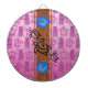 Old retro surfboard design with a pink background and Hawaiian Honu Sea Turtles and Tiki Masks pattern. The Hawaiian Sea Turtle is a symbol of peace, good luck, and the spirit within. It is based on the Hawaiian legend of Kauila, a sea turtle that could change into a girl and watch over the children of Hawaii.