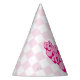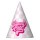 Create your own retro style hot pink and pink "Groovy One" typography paper party hat for your daughter's first birthday.