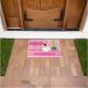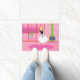 This Retro In the Pink Door Mat looks like a scene out of a 1960's romantic comedy. The minimalist design shows a sophisticated woman in her ultra kitschy and ultra pink, penthouse apartment. The room features a pink brick wall with white grout lines. In front of the wall, there is a green cone fireplace with a roaring fire. Through sliding glass doors we see a pink balcony with a white railing. A lush, tropical plant is in an aqua flowerpot. The view from the balcony is of a silhouette of a big city skyline. Of course, the silhouette is in shades of pink! A yellow, crescent moon is in the sky. Standing on a hot pink, shag rug in the apartment is the leading lady of this design. In stark contrast to the rosy world she has created, the beautiful blonde is wearing a form fitting, black, scoop-necked top with a long, flared, white skirt with black feather embellishments. With this design, you too can be looking at the world through rose coloured glasses!