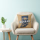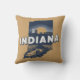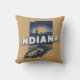 Stylish throw pillow features retro style scenic state silhouette of Indiana on light brown background.