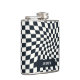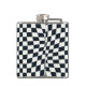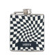 Modern but retro psychedelic chequered dark indigo blue and white flask